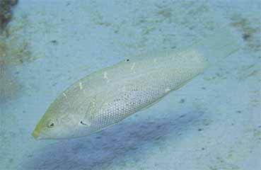 Описание: Окраска от беловатой до бледно-серой с шестью широкими полосами а самне, которые могут быть нечеткими. пятна на теле образуют неровные полосы, их цвет от красного до черноватого. У мелких особей а спинном плавнике большое черное пятно с желтой каймой, у крупных - маленькое черное пятнышко