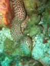 Мурены Не смотря на устрашающий вид, мурены – это достаточно робкие животные, нападающие на аквалангистов, только если их серьезно спровоцировать. Их змеевидная форма, внушительные размеры (некоторые экземпляры Гигантской мурены могут превышать длину 2 метра), впечатляющий, всегда полуоткрытый и снабженный опасными зубами рот действительно внушают страх. Но если приближаться к ней с осторожностью то можно заметить что они совсем не агрессивны. Конечно, не стоит слишком доверять или докучать ей, трогая, гладя или того хуже предлагая пищу: укус мурены не только очень болезнен, но и является причиной опасных инфекций. На их кожном покрове отсутствует чешую, а тело покрыто слоем слизи, позволяющей легко проскальзывать в тесные щели между мадрепорами. Днем мурены прячутся в выбранных в качестве убежища расщелинах рифа, откуда высовывают только голову, следя за происходящим вокруг. В сумерках они покидают норы и охотятся на своих любимых жертв – рыб и ракообразных, используя, прежде всего свое тонкое обоняние обеспечиваемое двумя ноздрями, состоящими из простых каналов, расположенных перед глазами и двумя другими ноздрями, формирующими два выроста на голове. Лишенные грудных плавников, мурены плавают, осуществляя типичные качающиеся движения. Рот мурен все время полуоткрыт для увеличения притока воды в дыхательный аппарат и облегчения обогащения крови кислородом. В Красном море водится около 15 видов семейства Муреновых. Самые распространенные в Красном море Гигантские мурены (Gymnothorax javanicus), без труда выходящие из норы в дневное время Желторотые мурены (G. Nudivoner) и небольшие пряничные мурены (Siderea grisea).
