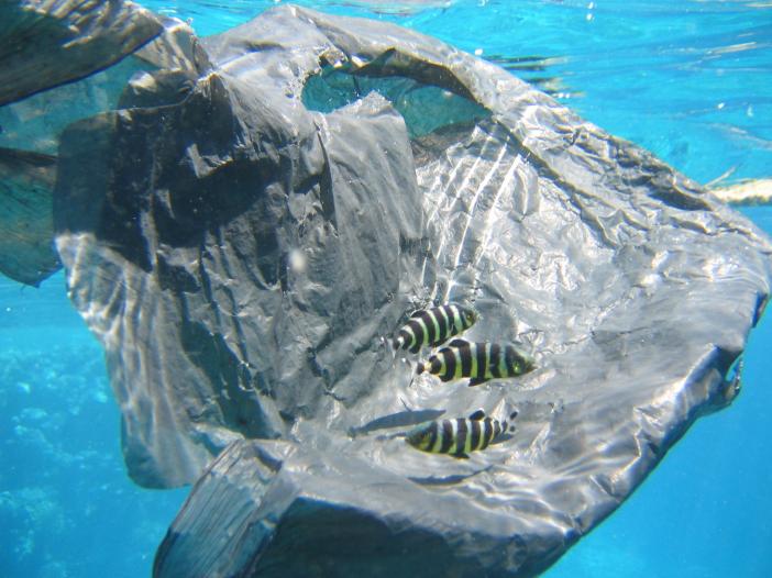 Малыши рыбки лоцманы прибились к носимому ветром пакету