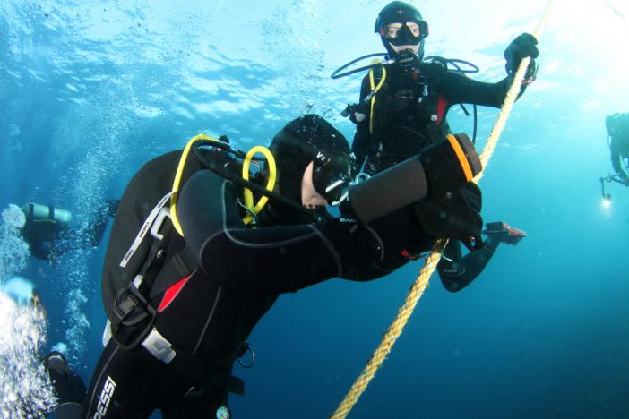 Дайвинг. Дайверы под водой. Подводное плавание.