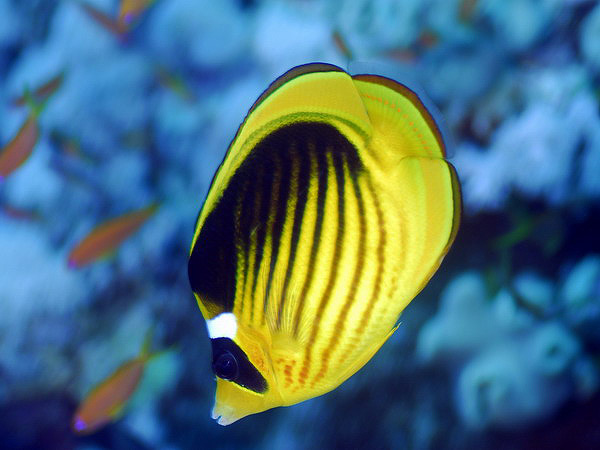 Морские рыбы. Подводный мир днем. / Полосатая рыба-бабочка