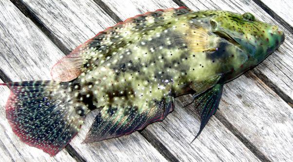 Все груперы относятся к ценным промысловым видам. Но этого мелкого я только сфотографировал и отпустил. Правда, точно определить не сумел.